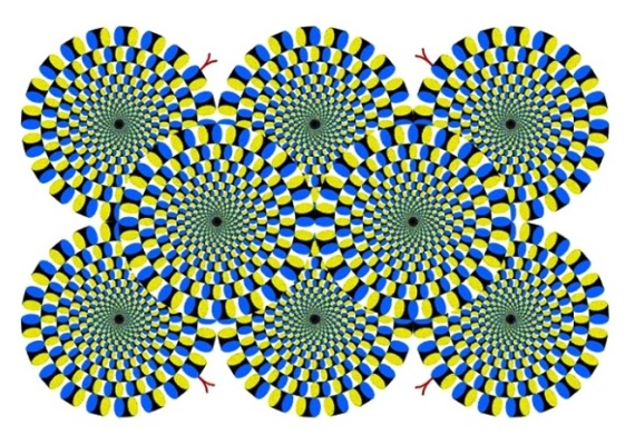 Десяти-пятнадцати секунд вам точно хватит, чтобы посмотреть на предложенную картинку под названием «Вращающийся змей» внимательно. Что же вам при этом удалось увидеть? Рисунок статичный? Или же какие-то части «орнамента» выступают вперед? А может, они вращаются, подобно шестеренкам? В зависимости от впечатления от увиденного сейчас можно сделать вывод о вашем психическом и физическом состоянии.